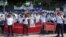 ရန်ကုန် ရထားဘူတာရုံကနေ UN ရုံး သို့ ချီတက်ဆန္ဒပြတဲ့ မြင်ကွင်း။ ~~~ ရနျကုနျ ရထားဘူတာရုံကနေ UN ရုံး သို့ ခြီတကျဆန်ဒပွတဲ့ မွငျကှငျး။